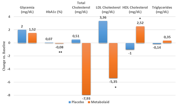 また、血液検査では、HbA1cの低下や、LDLコレステロールの低下、HDLコレステロールの上昇が、メタボレード群では確認されました。