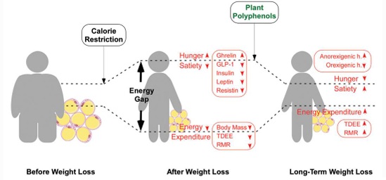 エネルギーギャップとは、ダイエット時に起こる現象で、お腹が減れば減る程、代謝率がダダ下がりに下がってしまう現象です。エネルギーギャップが広がれば広がる程、食べ物をちょっとしか食べなくても、代謝がガクンと落ちてるので、リバウンドと言う名の理不尽な量の贅肉として跳ね返って来ます。