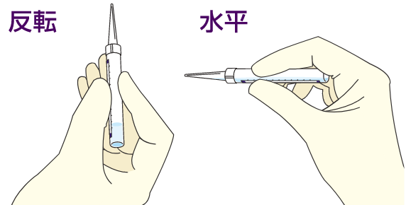 薬液が出過ぎてしまう場合や気泡により薬液が⼀定に流れない場合は、必要に応じてアプリケータを反転するとか、⽔平に保つ等の対処を⾏います。